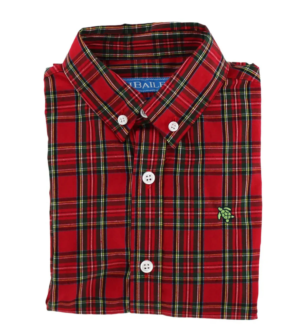 Roscoe Button Down Dress Shirt - Red Holiday Tartan Plaid